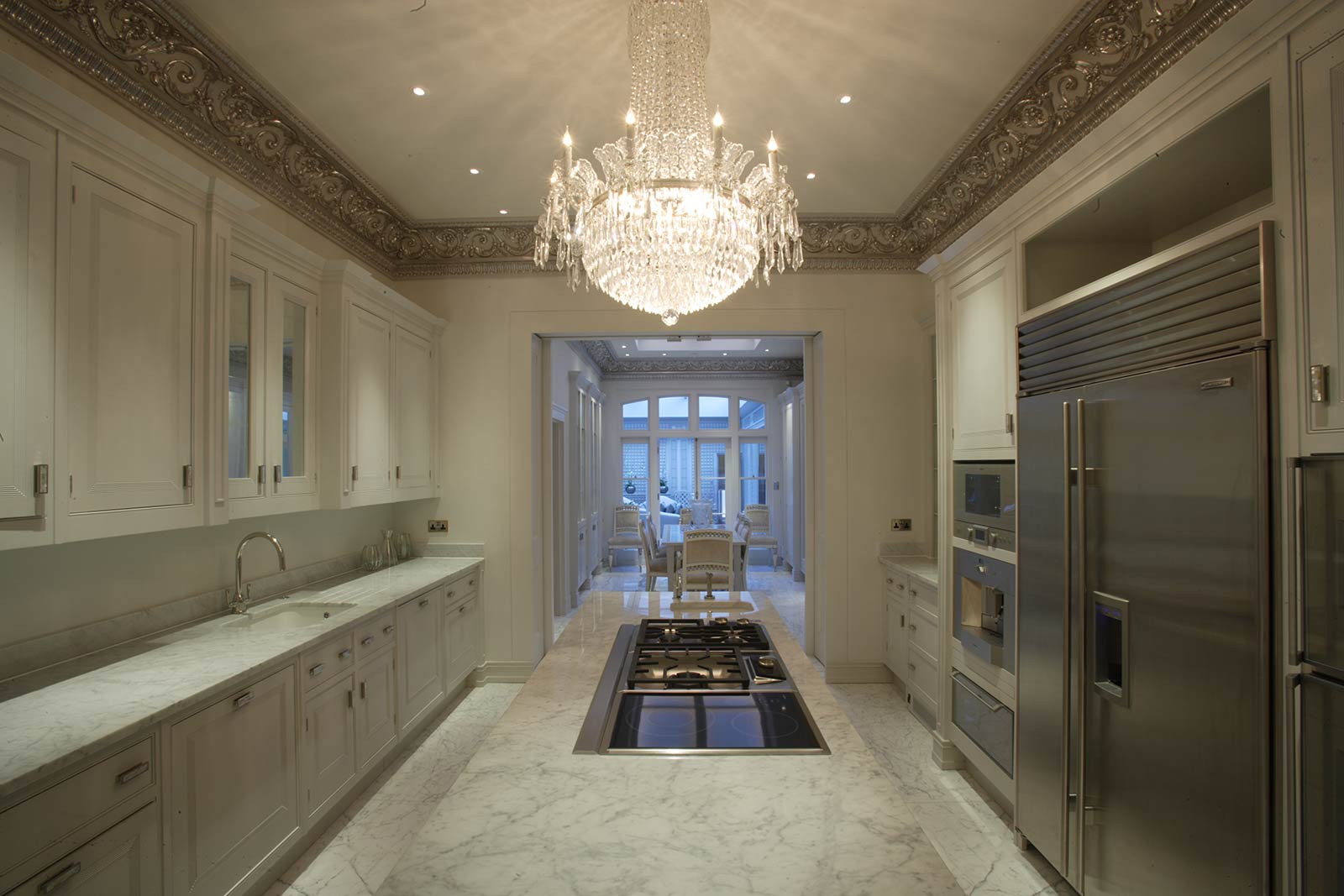 The project involved substantial structural alterations, including extensive underpinning to create a sub-basement housing a swimming pool, gym, steam room, wine cellar, media room, and a sophisticated two-tier mechanical and electrical plant room.